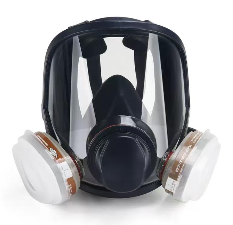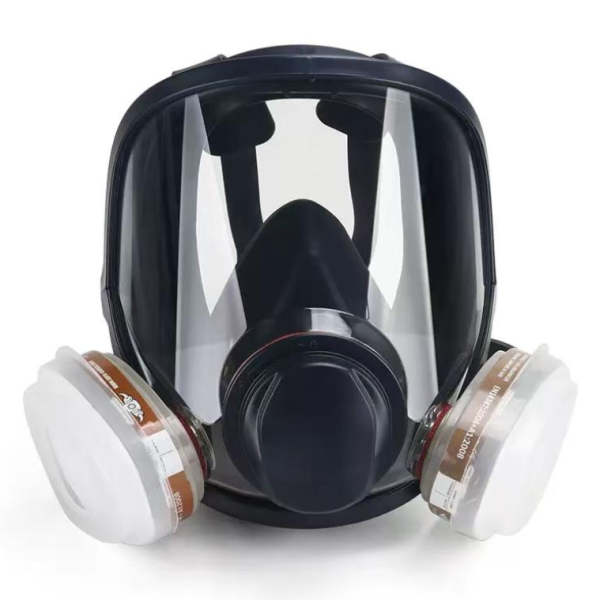 Dual – cartridge rubber full – face mask Made of high – grade rubber material, it fits the face comfortably and softly, suitable for users to wear for a long time. It is formed by one – time compression molding, which has a longer service life. It has good oil resistance and is not easy to age. The breathing valve can effectively reduce breathing resistance, reduce the accumulation of heat and moisture, improve comfort and make breathing smoother. Application environment: It is widely used in environments such as automobiles, heavy industry, petrochemical industry, shipbuilding, pharmaceuticals, machining, and welding to prevent particulate matter and toxic and harmful gases.