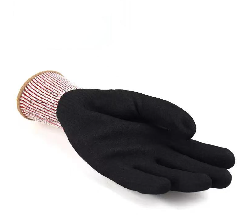 HPPE honeycomb – structured wear – resistant level – 5 cut – resistant gloves are made of HPPE honeycomb – structured cut – resistant material, with 13 – needle knitting. The palm has a wrinkled rubber – coated surface, while the back of the hand is uncoated. It has a black elastic wrist, providing breathability, comfort and dexterity. It features wear resistance, cut resistance and tear resistance. This product is suitable for use in dry environments to protect against mechanical and thermal risks. It is prohibited from being used in environments with chemical, electrical or microbial risks.